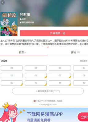 开始阅读 微信阅读 简介: 《68阶段》漫画简述:李秀晶在一次重创之后,便陷入到了无休止的噩梦之中,那些噩梦十分真实,甚至就连疼痛,也那么真实,可李秀晶就是知道自己在做噩梦。噩梦的统治者对于有人居然可以分清楚他的噩梦这件事十分生气,为了铲除她,梅德库尔开始不断使用诡计。手无缚鸡之力的李秀晶怎么才能在68个噩梦里突出重围呢?