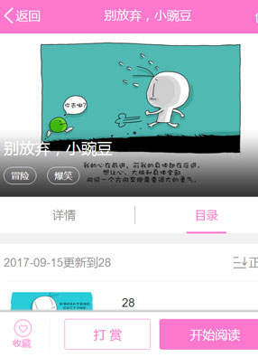 2025-06-15 09:30 开始阅读 微信阅读 简介:《别放弃,小豌豆》漫画简述:在人生前进的旅途之中,总会有那么几次实在无法坚持下去的时候,在那个时刻,梦想、爱情、欢笑近在眼前,却都没有力气去理睬。人生的意义有的时候也会变得模糊,让人辨认不清方向,但是,就算再怎样,人生也是要继续下去的,只要不放弃,总会得到人生的馈赠,不是吗?